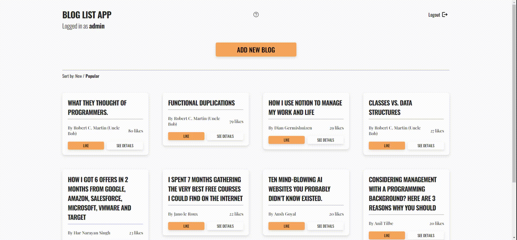 'Blog List App' is a full-stack MERN application built for users to be able to share their favourite blogs with one another. Technologies used to build the app: